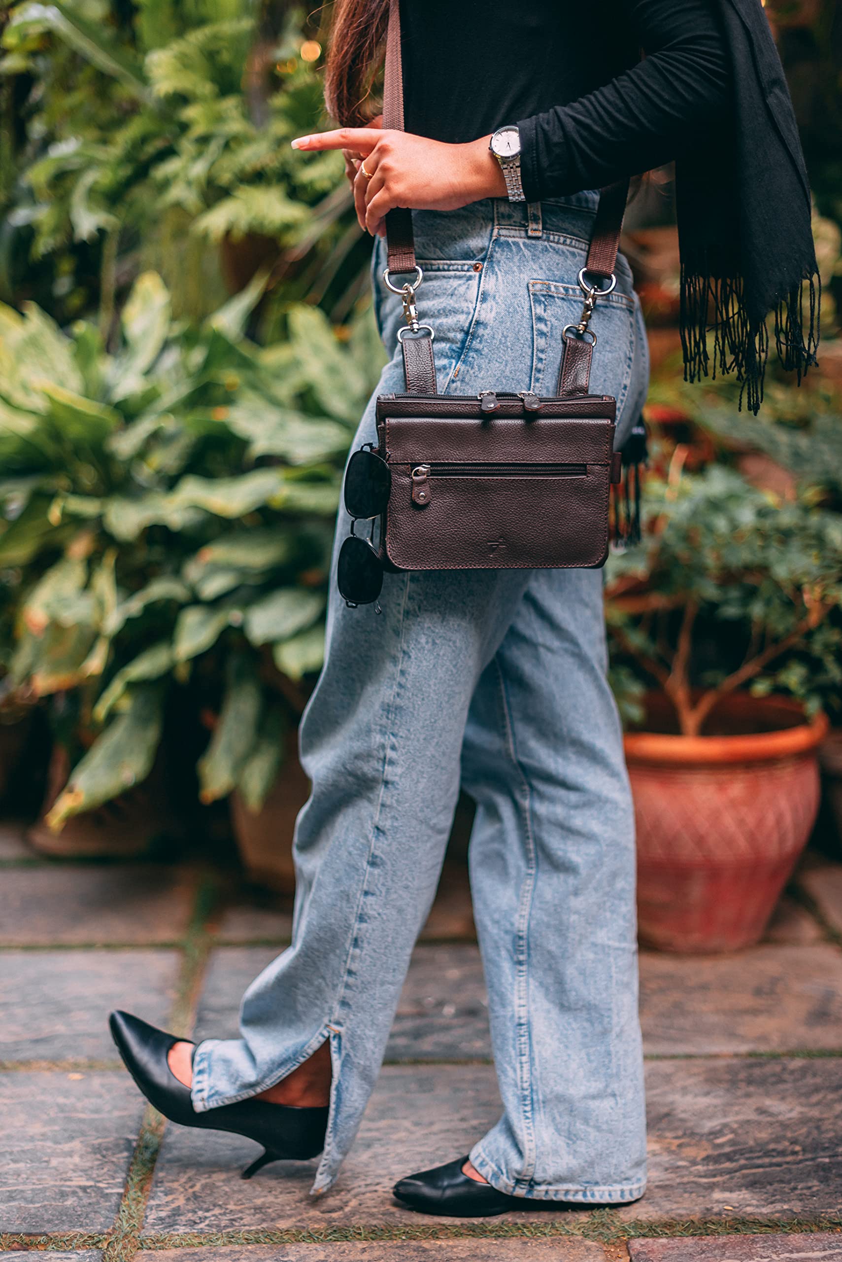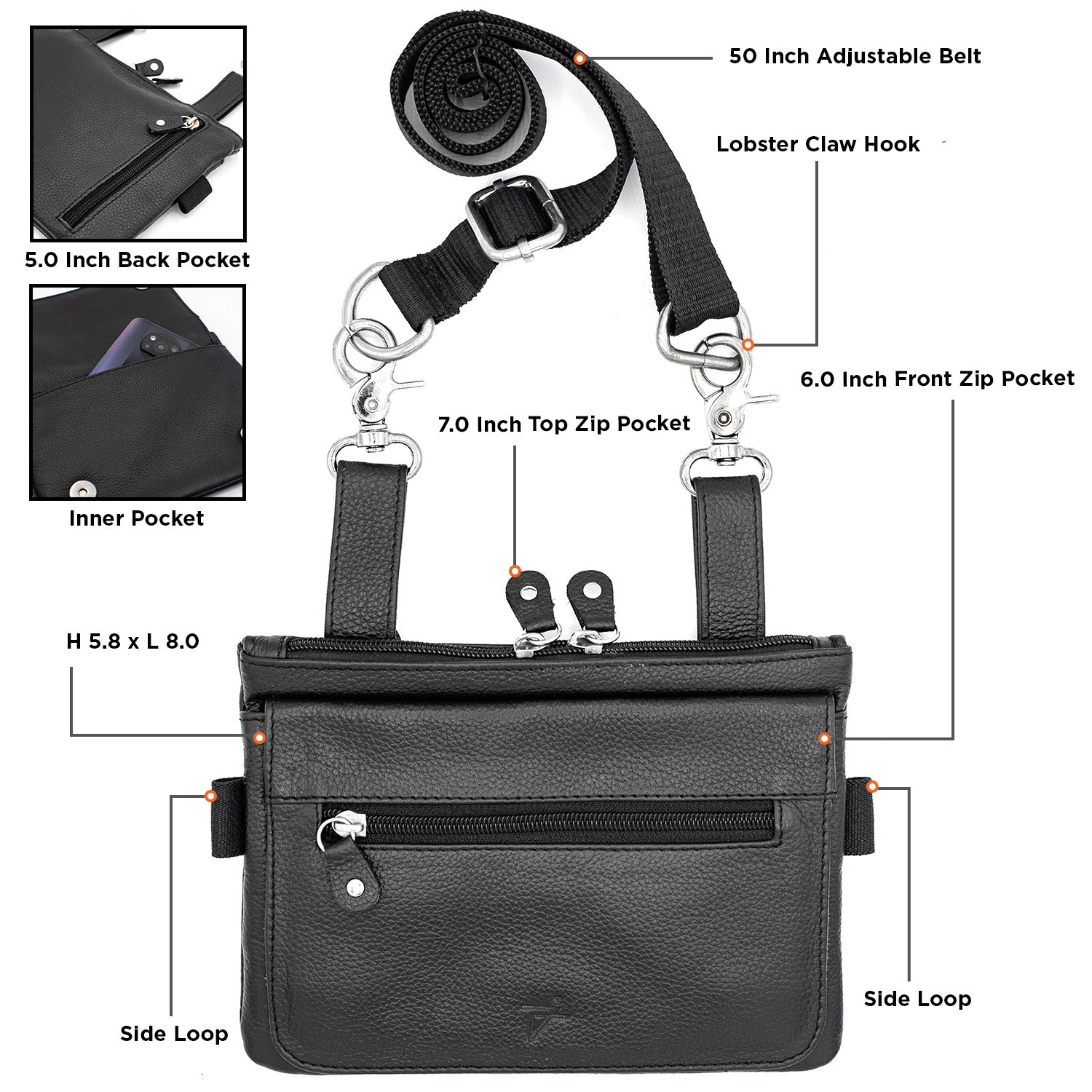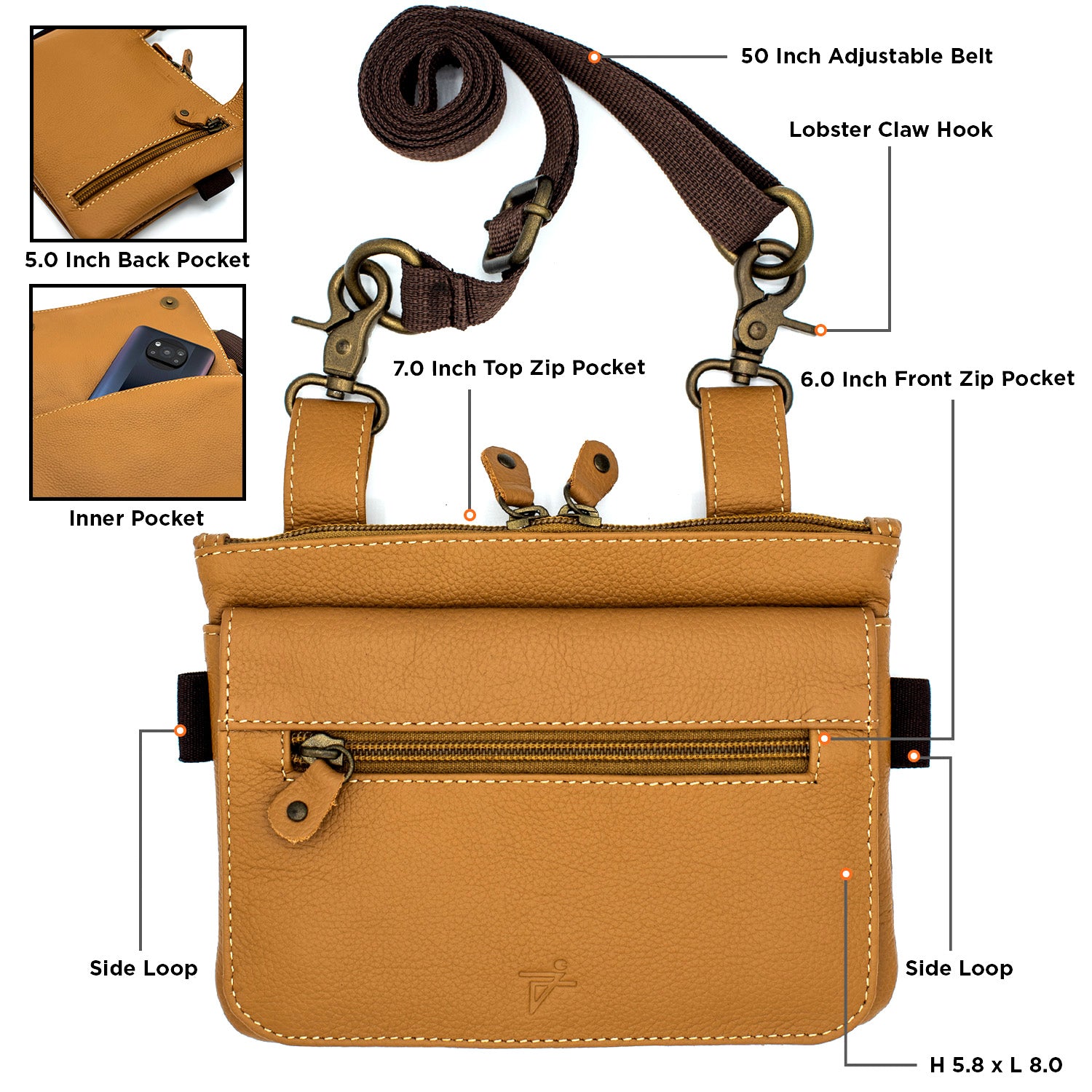 Genuine Leather Clip-On Pouch Crossbody Bag for Men Women