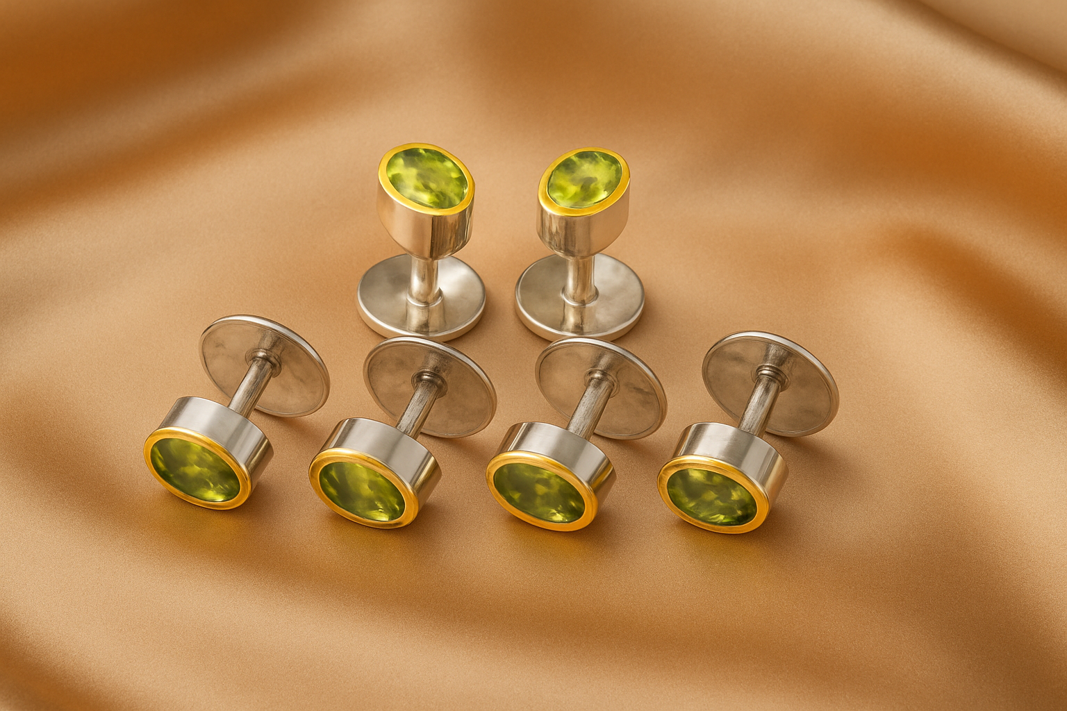 Perfect for grooms, distinguished guests, collectors, or anyone seeking a unique luxury accessory, this gemstone tuxedo stud set brings depth, color, and a touch of bespoke charm to your formalwear.