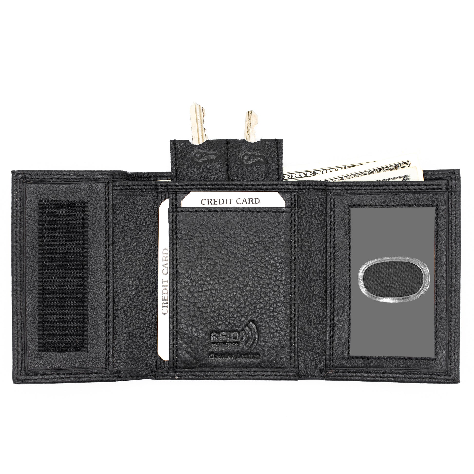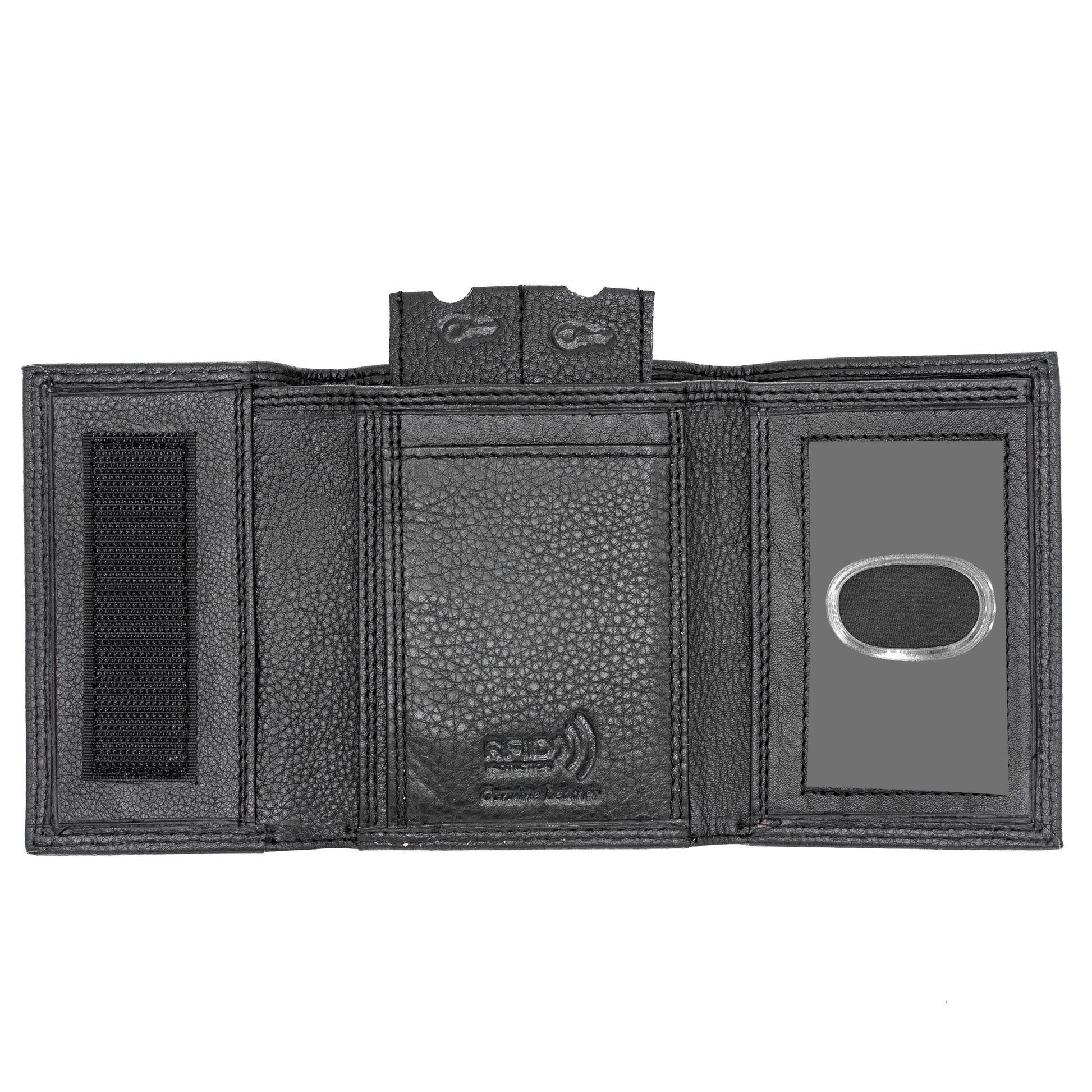 - RFID Safe Leather Tri-Fold Velcro Close Wallet